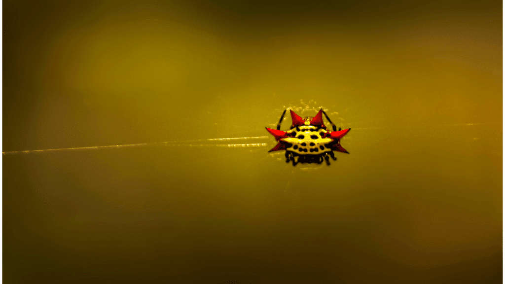 Gasteracantha cancriformis is “crab spider” due to its distinctive crab-like shape and hardened, spiny abdomen. However, it is crucial to clarify that these spiders are not taxonomically related to the true crab spiders (family Thomisidae). Other common designations include Spinybacked Orbweaver, Spiny Spider, Jewel Spider, or Thorn Spider.